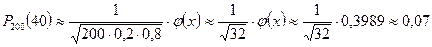 болады. Муавр – Лапластың локальдық теоремасы: Мысал 2.4.2 Егер А оқиғасының әр сынақта орындалу ықтималдығы р = 0,2 –ге тең болса, онда 200 тәуелсіз сынақтарда А оқиғасының а) 40 рет орындалу ықтималдығын; б) 60 реттен 80 ретке дейін орындалу ықтималдықтарын табу керек. Шешуі: а) есеп шарты бойынша:
