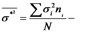 6.Правило сложения дисперсий. Если объединяются несколько распределений в одно, то общая дисперсия σ0*2 нового распределения равна средней арифметической из дисперсий объединяемых распределений, сложенной с дисперсией частных средних относительно общей средней нового распределения. Или, иначе говоря, общая дисперсия равна сумме внутригрупповой и межгрупповой дисперсий: