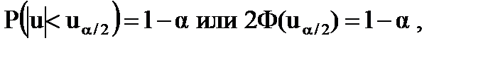 где Ф − функция Лапласа, uα/2 − квантиль нормального закона распределения, соответствующая уровню значимости a. Доверительный интервал для параметра а: