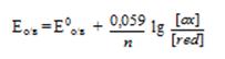 Например, электродный о/в потенциал системы Cu2++1e ↔ Cu+ по уравнению Нернста- Петерса при Т = 298 К равен: