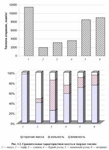 В современных условиях более 90% электро- и теплоэнергии получают, расходуя невозобновляемые энергоресурсы: различные виды угля, горючие сланцы, нефть, природный газ, торф, ядерное топливо. Для соизмерения качества энергоресурсов и определения действительной экономичности их расходования принято использовать понятие «условное топливо». Его низшую рабочую теплоту сгорания Qрн принимают равной 7000 ккал/кг (29 308 кДж/кг). Тонна условного топлива (т у.т.) --- это количество топлива, при сжигании которого образуется Qрн = 4400...6500 ккал/кг, газа Qрн = 7000...11 200 ккал/кг, мазута Qрн= 9500...9700 ккал/кг (рис. 1.2). Уголь --- один из наиболее распространенных в природе энергоносителей. Доля угля в топливно-энергетическом балансе России составляет около 12 %. Ресурсы угля во много раз превышают прогнозируемые ресурсы нефти и газа. Наиболее крупные приросты добычи угля могут дать Кузнецкий и Канско-Ачинский бассейны (80 %). Газ --- наиболее чистый вид топлива. Газообразное топливо существует в нескольких формах: природный газ; попутный газ, из недр земли при добыче нефти; доменный и коксовый газы, получаемые при металлургическом производстве. На ТЭС России преимущественно используется природный газ (свыше 50 % в топливном балансе России и 70...80 % в ее европейской части). Главное преимущество природного газа состоит в его относительной экологической безопасности. Газ используют для котельных и ТЭЦ крупных городов.. В России создана единая система газоснабжения страны. Это обеспечивает экономичность транспортировки газа и возможность управления потоками энергоресурсов.