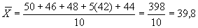 Так как значения осредняемого признака не повторяются, то достаточно использовать среднюю арифметическую невзвешенную: Средняя величина в нашем примере характеризует средний возраст членов данной бригады, который составляет 48 лет. Если перед нами встанет вопрос об определении среднего возраста рабочих другой бригады в составе 10 человек, с набором рабочих тех же возрастов, что и в предыдущей, но с тем отличием, что в этой бригаде рабочих в возрасте 42 года было 6 человек тогда средняя арифметическая получит общий вид средней взвешенной величины в таком выражении В данном случае мы использовали среднюю арифметическую взвешенную: