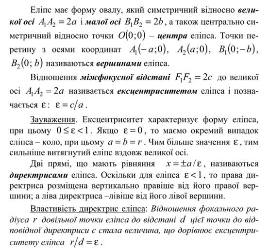 Ексцентриситет та директриса еліпса, гіперболи і параболи.