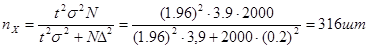 Задача 3. Сколько деталей необходимо отобрать из партии в 2000 штук в порядке бесповторного отбора, чтобы ошибка средних затрат времени на изготовление деталей не превышала 0,2 мин., а ошибка доли деталей, на изготовление которых тратится менее 24 мин. - 4%, с вероятностью 0,95.