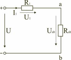 Схему (рис. 1.9) можно представить в упрощенном варианте (рис. 1.10), где сопротивления R1 и Rab включены последовательно. Тогда эквивалентное сопротивление исходной схемы (рис. 1.7) будет равно: