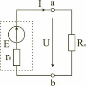 У идеального источника ЭДС внутреннее сопротивление r0 << Rн (приближенно r0»0). В этом случае его вольт-амперная характеристика представляет собой прямую линию (рис. 1.16), следовательно, напряжение U на его зажимах постоянно (U=E) и не зависит от величины сопротивления нагрузки Rн.