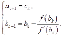 Если же f (bk) f "(bk) > 0, то, наоборот, точку bk можно переместить ближе к корню по формуле Ньютона, а точку ak – по формуле метода хорд: