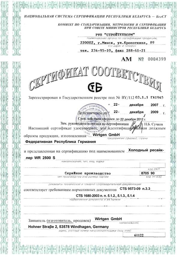 Образец сертификата соответствия