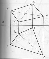 Задача 3. Определите видимость ребер пирамиды SABC.