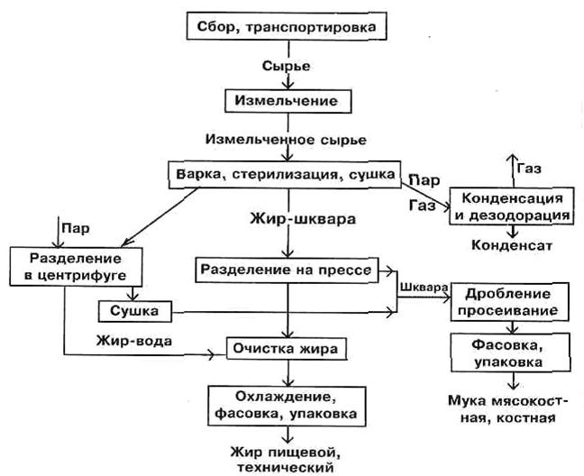 Рис. 9. Схема технологии переработки жиросодержащего сырья (мягкого и твердого) сухим способом