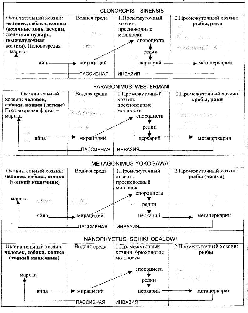 Работа 3. Заполнить сравнительную таблицу по трематодам: