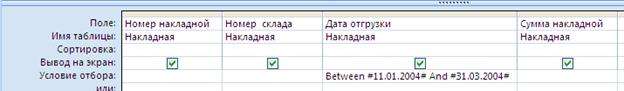 3. Сохраните запрос под именем Пример1. 1. Создайте новый запрос в режиме конструктора (запрос создается на основе таблицы Накладная):