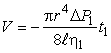 которую и называют кинетической вязкостью жидкости. Величина v точнее, чем величина Силы сопротивления, возникающие при движении жидкости в трубе, зависят не только от вязкости жидкости, но и от характера ее движения. Течение жидкости называется стационарным, если вектор скорости частиц жидкости в каждой точке пространства, занятого текущей жидкостью, остается постоянным. Другими словами, любая частица жидкости проходит данную точку пространства с одной и ой же по величине и направлению скоростью. При стационарном течении жидкость движется как бы слоями, причем каждый слой скользит относительно соседнего без перемешивания, а векторы скорости всех частиц жидкости параллельны оси трубы. Такое течение жидкости называется ламинарным (слоистым). При увеличении скорости течения жидкости слоистый характер движения жидкости нарушается, и ламинарное течение переходит в турбулентное, при котором силы сопротивления движению жидкости в трубе резко возрастают. Определить, какой вид движения жидкости будет в данной трубе, можно с помощью экспериментально установленного критерия, который называется числом Рейнольдса:
