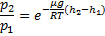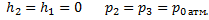С изменением высоты от h1 до h2 давление изменяется от p1 до p2