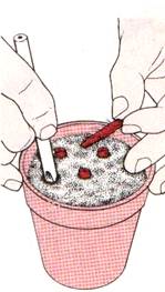 Рис. 24. Стратифікація насіння безсубстратним способом в перфорованих пакетах. Субстрат. В якості субстрату для стратифікації використовують промитий річковий пісок, вермикуліт, керамзит. Для видів з великим насінням (абрикос, персик, мигдаль, волоський горіх) в якості субстрату можна також використати не розкладений торф чи мох. Вологість субстрату підтримують на рівні 55-70%. Вологе оброблене насіння змішують з вологим субстратом в співвідношенні 1:3. Як правило, насіння перешаровують субстратом: шар насіння – шар субстрату. При стратифікації в холодильних камерах з регульованою температурою і вологістю стратифікувати насіння можна в поліетиленових перфорованих пакетах безсубстратним способом. Температура. Для кісточкових період стратифікації ділять на теплий і холодний, спочатку насіння витримують при температурі +18-20°С, через 20-30 діб знижують до +5-8°С, аж до розтріскування кісточок. Після розтріскування температуру знижують до 0-1°С. Для зерняткових застосовують лише холодний – при температурі 0-+3°С. Протягом стратифікації за насінням ретельно спостерігають. При появі зародкових корінців температуру знижують до -1°С.