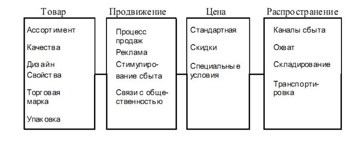 Как видно, главная причина, по которой клиенты перестают покупать товар, – плохое отношение или безразличие со стороны сотрудников компании. Источниками возникновения всех перечисленных причин являются проблемы, существующие в компании, товаре, персонале. Самую удачную характеристику успешного продавца дал П.Ф.Друкер, назвав его ПРО-продавец (про- от латинского «за»). Аббревиатура «ПРО» расшифровывается как Положительный, Респектабельный, Оптимальный» [12, с. 11]. Быть продавцом – это означает: - быть настроенным на положительный образ жизни, сохранять положительную позицию по отношению к людям, животным, по отношению ко всему миру; - быть респектабельным человеком, т.е. продавец должен восприниматься покупателем как человек надежный, готовый прийти на помощь, в любом отношении полезный человек; - оптимально организовать свою жизнь, не растрачивать ее впустую, а стремиться сделать из нее нечто максимально лучшее. Процесс продаж в коммерческой организации – это действия продавца, направленные на потребителя, с целью убедить последнего совершить покупку необходимого товара. Поэтому продавец стремится эффективно делать правильное» [12, с. 12]. Совокупность личных качеств продавца всегда должна быть дополнена общей атмосферой (имиджем) торгового предприятия, включая его ориентацию на удовлетворение нужд и потребностей покупателей. Необходимо помнить, что покупателей интересуют не товары, как таковые, а их способность удовлетворять определенные потребности, что сегодня без развития системы предпродажного и постпродажного сервиса успешно сделать невозможно. Успешная деятельность любого коммерческого предприятия напрямую зависит от правильного построения и эффективного воплощения на практике маркетингового комплекса, или, как его еще называют, маркетингового микс-комплекса (marketing mix). Маркетинговый комплекс продвижения товара – это последовательный процесс создания товара, вывода его на рынок и организации устойчивого спроса с целью продажи товара потенциальному потребителю. Основные этапы маркетингового комплекса представлены на рис. 2.15.