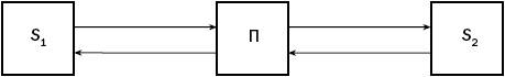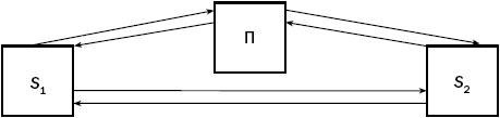 где S1 и S2 – субъекты конфликта; П – посредник (медиатор). а) коньюнктивный; б) конгруэнтный; в) дизьюнктивный; г) смешанный; д) линейный. 3. К какому варианту посредничества относится взаимодействие, представленное на схеме: