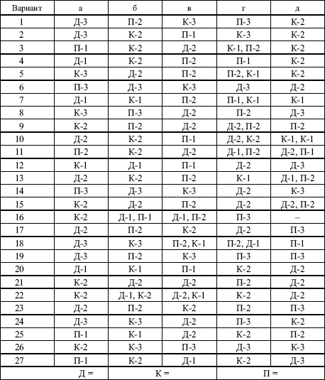 Тест 14.3. Управленческая ситуация и направленность руководителя [23] Связь между личностными характеристиками и эффективностью деятельности опосредуется такими социально-психологическими факторами, как позиция личности в коллективе, степень соответствия ее интересов с интересами членов коллектива. Тест измеряет следующие четыре типа позиций, склонностей и ориентаций руководителя: Д – ориентация на интересы дела; П – ориентация на отношения с людьми, психологический климат в коллективе; С – ориентация на себя; О – ориентация на официальную субординацию. Инструкция. Вам будет предложено 20 производственных ситуаций и 4 варианта решений ситуации (А, Б, В или Г). Выберите, пожалуйста, те варианты решения, которые вам подходят, и отметьте их. Тест позволяет заочно оценить другого руководителя, тогда выбирайте варианты решений, подходящие ему. Старайтесь быть искренними и объективными.