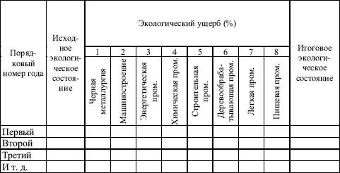 Подведение итогов занятия При подведении итогов защиты преподаватель оценивает работу авторов рефератов, оппонентов и всех членов «Экспертного совета». Оценка авторов складывается из четырех позиций: оценки за содержание реферата, за доклад по реферату, за ответы на вопросы членов «Экспертного совета», за ответы на замечания оппонентов. Оценка оппонентам дается за содержание отзыва и выступление с ним. Работа членов «Экспертного совета» оценивается по их участию в постановке вопросов, а также по выступлениям в ходе защиты. Занятие 15.2. Тема: «Глобальные и региональные конфликты». Деловая игра «Международная координация»[26] Цель игры. Показать участникам взаимосвязь промышленного производства с уровнем благосостояния населения и состоянием окружающей среды; закрепить навыки коллективной деятельности и владения финансовой документацией в условиях ограниченного времени. Содержание игры Подготовительный этап. Перед началом игры следует подготовить и размножить в необходимом количестве основную информацию для каждой группы участников. Если такой возможности нет, то основную информацию можно оформить на классной доске, чтобы она была доступна в любой момент игры всем ее участникам. Заранее готовится и деловая документация, которая требуется для осуществления финансовых и других расчетов. Основной документ каждой группы – экологический бюллетень, в котором отражаются все изменения, происходящие в экологии страны.