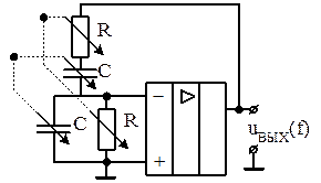 Схема генератора строится на основе усилителя, у которого в широком диапазоне частот коэффициент передачи – вещественная величина, а фазовый сдвиг Частота гармонических колебаний в RС-генераторе с мостом Вина: