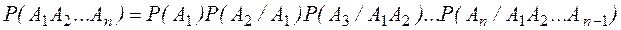 В случае произведения нескольких зависимых событий вероятность равна произведению одного из них на условные вероятности всех остальных при условии, что вероятность каждого последующего вычисляется в предположении, что все остальные события уже совершились.