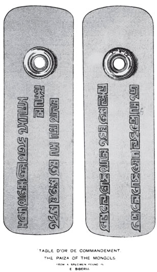 Рис. 0.4. «Монгольская» пайдзе, обнаруженная в Сибири. Взято из [1078], т. 1, вклейка между стр. 352–353