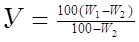 2. При відхиленні якості зерна від базисних норм за кожний 1 % вмісту в зерні смітної домішки більше або менше базисної норми зменшується або збільшується норма: а) сумарного виходу перлових круп — на 0,4 %, кормової мучки на 0,45 %, лузги — на 0,15 %; б) сумарного виходу ячних круп -на 0,6 %, мучки- на 0,25 %, лузги - на 0,15 % за рахунок збільшення або зменшення норми виходу відходів 1 і II категорій і відходів III категорії у рівних частинах. 3. За кожний 1 % вмісту зернової домішки більше або менше базисної норми зменшується або збільшується норма: а) сумарного виходу перлових круп - на 0,4 %, кормової мучки - на 0,45 %, лузги — на 0,15 %; б) сумарного виходу ячних круп - на 0,6 %, мучки - на 0,25 %, лузги - на 0,15 % за рахунок збільшення або зменшення норми виходу відходів І і II категорій. 4. За кожний 1 % фактичної усушки більше або менше базисної норми зменшується або збільшується норма: а) сумарного виходу перлових круп — на 0,4 %, кормової мучки на 0,45 %, лузги — на 0,15 %; б) сумарного виходу ячних круп - на 0,6 %, мучки - на 0,25 %, лузги на 0,15 % за рахунок збільшення або зменшення норми усушки. Фактичну усушку (У) продуктів переробки визначають за формулою: