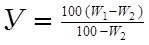 1. Для розрахунку виходу базисною за якість вважається кукурудза з вмістом (в %): смітної домішки — 1; зернової — 2. Дрібні недорозвинені зерна кукурудзи (для рисової кукурудзи — прохід крізь пробивне сито з отворами діаметром 3,5 мм; для крем'янистої та зубоподібної — з отворами діаметром 5 мм) відносяться до зернової домішки. 2. За кожний процент смітної домішки більше або менше базисних кондицій норма загального виходу круп, борошна, мучки, зародка зменшується або збільшується: круп — на 0,4 %, борошна — на 0,1 %, кормової мучки — на 0,3 %, зародка — на 0,2 % за рахунок збільшення або зменшення норми виходу відходів І і II категорій — на 0,5 % і відходів III категорії — на 0,5 %. 3. За кожний процент вмісту зернової домішки у зерні більше або менше базисних норм зменшується або збільшується норма загального виходу круп на 0,4 %, борошна — на 0,1 % за рахунок збільшення або зменшення норми виходу мучки на 0,3 % і відходів І і II категорій - на 0,2 %. 4. За кожний процент фактичної усушки більше або менше базисних норм зменшується або збільшується норма загального виходу круп, борошна, мучки і зародка на 1 % пропорційно базисним нормам за рахунок усушки. Фактичну усушку (У) продуктів переробки визначають за формулою: