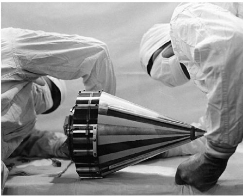 Рис. 1.13. Зонды «Рейнджер‑3…5» должны были не только передавать изображения лунной поверхности, но и доставить на нее сейсмометры, заключенные для амортизации удара в шарообразный деревянный контейнер.