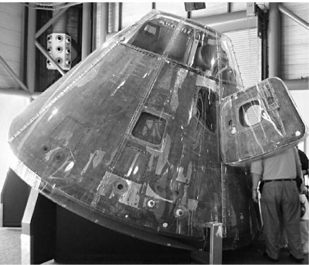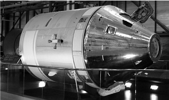 Рис. 1.16. Командный модуль «Аполлона». Он так же отправился к Луне с полуострова Флорида и вернулся на Землю практически в той же области Тихого океана, что и снаряд жюль‑верновской «Колумбиады».