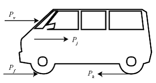 Рис. 44. Автомобиль с приложенными к нему реальными силами и «вспомогательными» фиктивными силами инерции