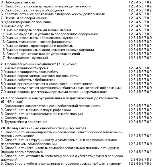 Оцените себя по девятибалльной шкале по каждому показателю и определите уровень сформированности у себя умений и навыков самообразования. Предложите оценить себя сокурсникам, сравните результаты и сделайте выводы.