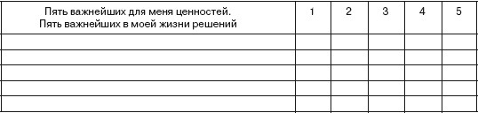 Известно, что система ценностей является отражением этических принципов. Проделайте последовательно следующие операции: В приведенной ниже табл. 13, где перечислены ценности человека, из каждого столбца выберите по пять ценностных характеристик, которые имеют для вас наибольшее значение. Проанализируйте выбранные ценности по мере убывания их значимости, поставив на первое место самую важную, на последнее – наименее важную.
