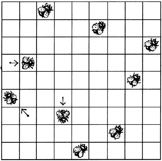 5. Стрелки на рис. 13 показывают, какие мухи переменили место и с каких клеток они пересели.