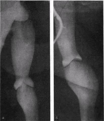 Рис. 24. Флебограммы нормально функционирующих клапанов глубоких вен бедра (а) и голени (б)—ретроградное контрастировать. Таким образом, в патогенезе возникновения тромбозов вен следует особо подчеркнуть роль клапанных синусов, где агрегация форменных элементов крови и начало тромбообразова-ния наиболее вероятны. Если больной вынужден длительно находиться в постели, мышечная активность и, в частности, движения в голеностопных суставах— действенное,, средство, профилактики тромбообразо-вадия в венах голени. Следует отметить, что тленно вены голеней—основной источник эмболии легочной артерии.——-