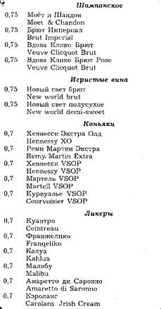 Карта вин — перечень алкогольных напитков и других сопутствующих товаров, предназначенный для доведения информации о наименованиях напитков и цен на них. Перечень алкогольных напитков является основным ассортиментом. Кроме того, в карту вин включаются пиво, безалкогольные напитки, табачные изделия, кондитерские изделия (конфеты, шоколад и др.). При составлении карты вин учитывают особенности предприятия (национальная кухня, европейская). Эти факторы определяют последовательность расположения отдельных групп напитков. Например, в ресторанах с русской кухней перечень винно-водочных изделий начинается с водок, горьких настоек, наливок. Затем включают вина виноградные, игристые, а также коньяки, ликеры. Далее перечисляются пиво, прохладительные напитки, соки, минеральные воды. Для напитков, отпускаемых в розлив, указывается цена за 100, 50, 40 или 20г. Кроме того, включаются табачные и кондитерские изделия (конфеты, шоколад и др.). В ресторанах с европейской кухней перечень алкогольных напитков может начинаться с представления вин с кратким пояснением места их производства и характерных свойств, затем указывают крепкоалкогольные напитки, например различные наименования виски, джина, текилы, рома, водки, пива, безалкогольные напитки, табачные и кондитерские изделия. На специализированных предприятиях (в пивных ресторанах и барах) вначале перечисляют сорта и наименования пива, затем следует небольшой ассортимент крепкоалкогольных напитков, различных вин, безалкогольных напитков. Примерная карта вин ресторана с русской и европейской кухней: