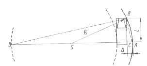 Рис. 16. Схема расположения автомобиля при движении по прямой (а) и кривой (б) и для расчета величины уширения (в) Из подобия треугольников АВС и ВСД находим, что Учитывая, что значение АС значительно меньше 2 R, пренебрегаем величиной АС и тогда