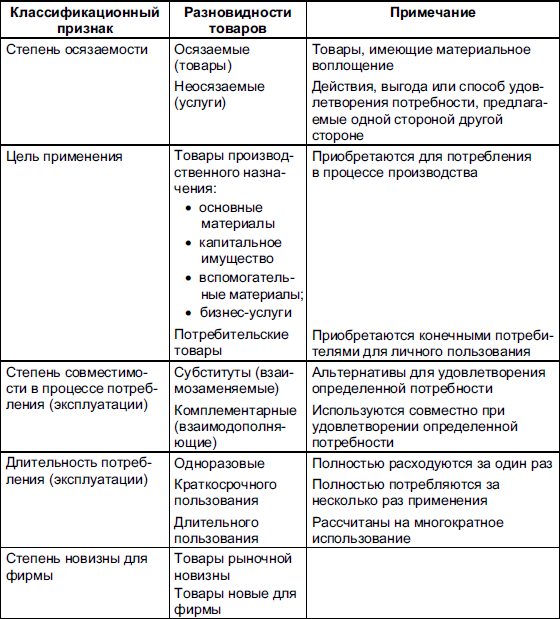 Таблица 8 Классификация потребительских товаров