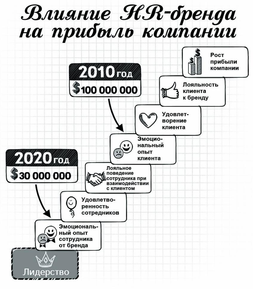 1. Корпоративная культура влияет на прибыль компании: от атмосферы в компании зависит удовлетворенность сотрудников. Удовлетворенность сотрудников повышает качество их взаимодействия с клиентом, формируя его эмоциональный опыт от бренда. Отношение к компании ее сотрудников – это основной канал, через который бренд транслируется на рынок. Лояльность к бренду повышает продажи, а следовательно – и прибыльность компании.