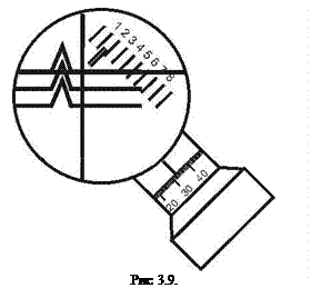 Следует обратить внимание на то, что величины отсчетов по окуляр-микрометра в указанных соотношениях входят как отношения разностей, поэтому единицы измерений для этих величин безразличны. Это позволяет применить весьма удобный способ снятия этих отсчетов. Для этого надо по