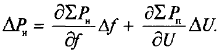 где ∑Ри - суммарная активная мощность источников; ∑Рсн - собственные нужды генерирующих источников; ΔРп - потери активной мощности. Приведенное уравнение определяет баланс активных мощностей в электрической системе. Баланс активных мощностей соответствует определенным значениям частоты и напряжения в узлах, к которым подключены потребители (нагрузки). Изменение мощности источников связано с изменением частоты и напряжения очевидным равенством, получающимся разложением в ряд Тейлора функции ∑Ри = F(f;U):
