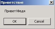 Рис.6. Диалоговое окно ввода Если мы наберем в окне ввода имя Федя и нажмем на кнопку Ок, то после выполнения второй инструкции на экране появится следующее диалоговое окно