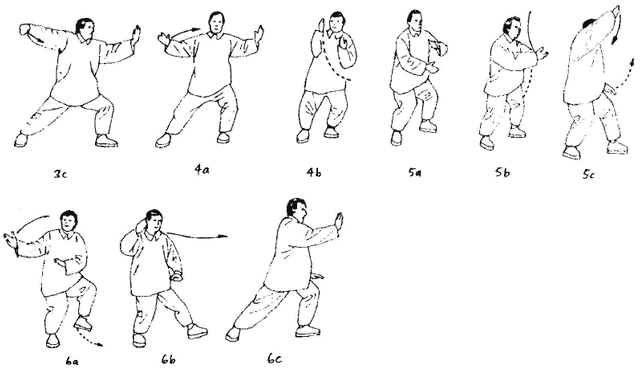 4. Поднятие рук. 5. Белый журавль хлопает крыльями. 6. Поворот колена с ударом (левый).