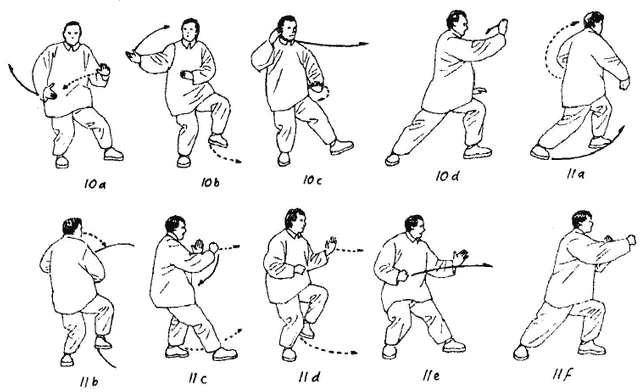 46. Перекрещенные руки. 47. Отвести тигра назад, к горе. 48. Наклонный кнут. 49. Дикая лошадь распускает гриву. 50. Ухватить воробья за хвост.