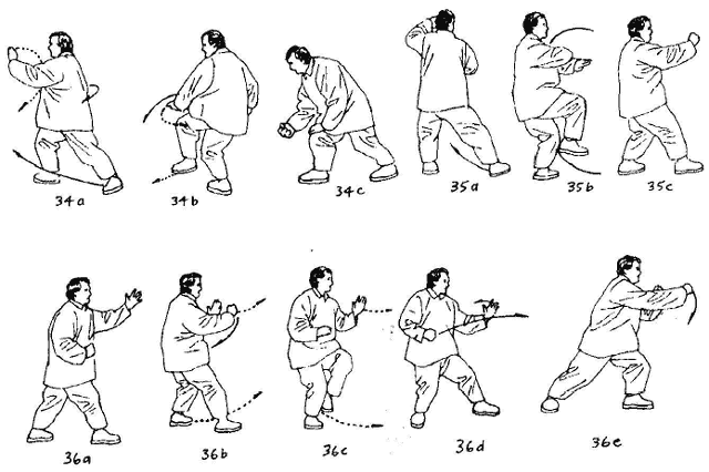 34. Размашистый кулак. 35. Удар кулаком снизу. 36. Движение — перехват — удар.