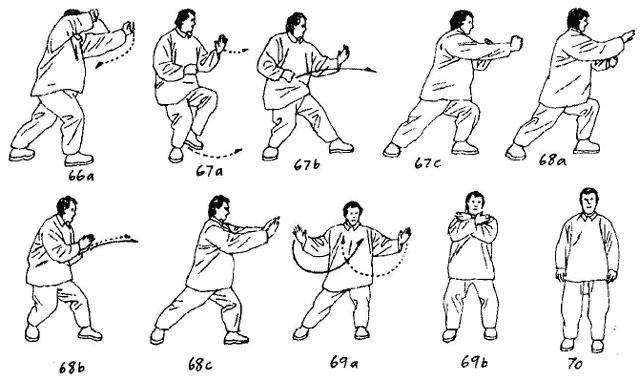 Представленный ниже комплекс приемов был составлен мастером в третьем поколении Ян День Фу. Он состоит из 85 приемов, которые я сократил (убрав многочисленные повторы) до 70. 1. Начальный прием тай-цзи. 2. Ухватить воробья за хвост. 3. Кнут.