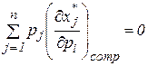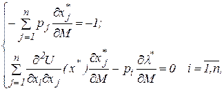 Відповідно до (8) Економічний зміст рівняння Слуцького: оскільки вивчається зміна попиту за зростання ціни на n -й товар, що не компенсується підвищенням доходу, то друга складова в (10) знімає штучний приріст попиту, викликаний компенсуючим зростанням доходу. Для того щоб скористатися рівнянням Слуцького, вивчимо властивості матриці: Розглянемо випадок, коли