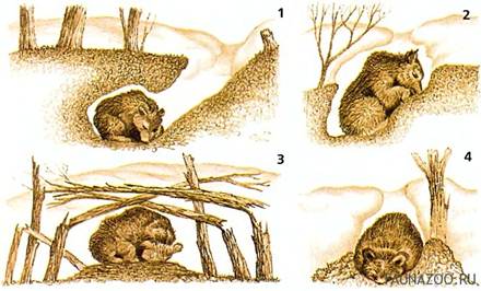Убежище «берлога» строится довольно легко. Сначала в буреломе находится яма или другое углубление. Затем сверху настилается перекрытие различными материалами – бревнами, лапником, прутьями и проч. Далее перекрытие надо засыпать снегом, сухими листьями или иными изолирующими материалами. Почувствуй себя медведем!