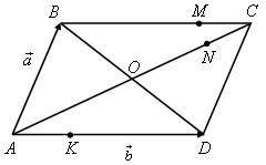Урок 6 Цели: закрепить изученный материал в ходе решения задач; развивать логическое мышление учащихся. По заранее заготовленным чертежам на доске устно решить задачи: 1. На рисунке 1 ABCD – параллелограмм, O – точка пересечения диагоналей. Выразите через векторы 2. На рисунке 2 ABCD – трапеция, О – точка пересечения диагоналей, ВС || AD, AD = 2 BC. Выразите через векторы