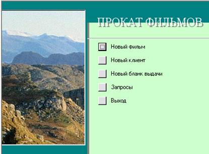 В результате описанных действий создастся кнопка, при нажатии на которую будет осуществляться добавление нового фильма в базу данных. Аналогично, можно создать кнопки для добавления нового клиента, нового бланка выдачи. В главной кнопочной форме могут содержаться страницы Запросы или Отчеты для выполнения функций печати или просмотра запросов. Для этого необходимо: